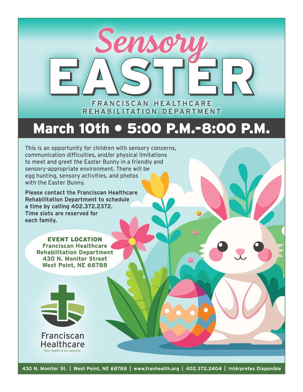 This is an opportunity for children with sensory concerns, communication difficulties, and/or physical limitations to meet and greet the Easter Bunny in a friendly and sensory-appropriate environment. There will be egg hunting, sensory activities, and photos with the Easter Bunny.